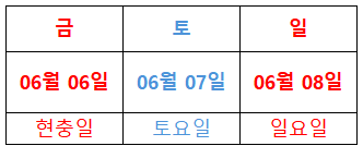 4) 현충일 : 6월 6일(금) ~ 6월8일(일)
