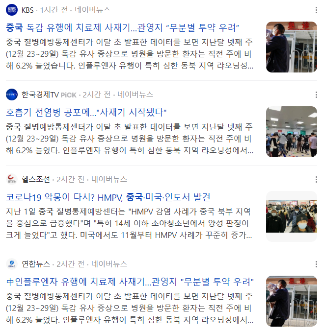 최근 중국 인도 미국에서 HMPV 감염사례가