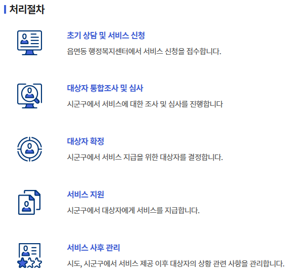 - 본인 또는 대리인이 본인 주민등록 상 주소지 읍면동 행정복지센터 방문 신청