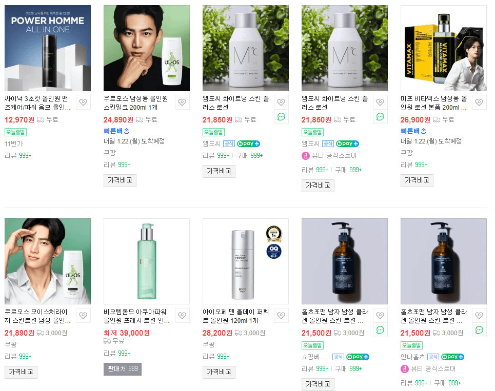 '남성 올인원 스킨로션'의 네이버쇼핑 검색 결과입니다