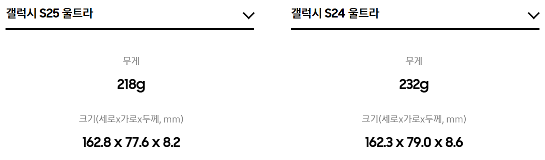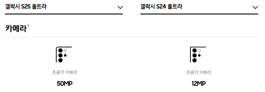 [1] Samsung - 삼성 갤럭시 S25 울트라 vs 갤럭시 S24 울트라 비교하기 (https://www.samsung.com/sec/smartphones/galaxy-s25-ultra/compare/)