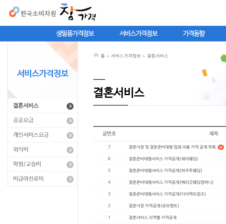 홈 > 서비스가격정보 > 결혼서비스