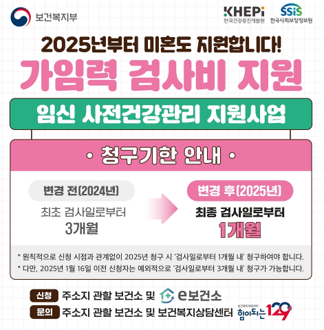 신청은 e보건소(e-health.go.kr) ‘임신 사전건강관리 지원’에서 확인
