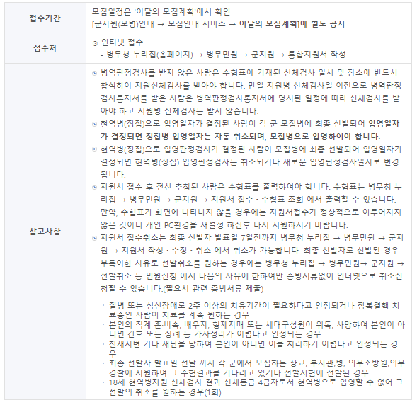 ※ 이 글은 병무청 정보를 바탕으로 작성하였습니다.