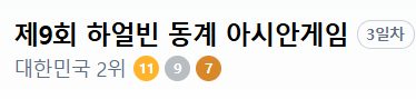하얼빈 동계 아시안게임 3일차 대한민국 순위에 대해 안내해 드리겠습니다.