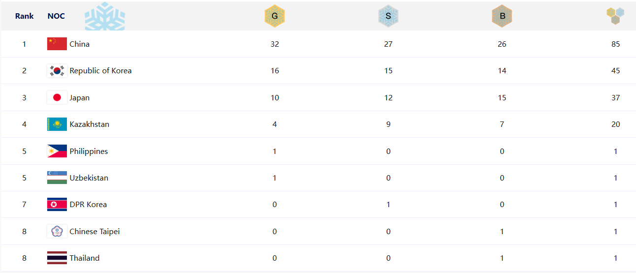 [2] 중앙일보 - 하얼빈 동계아시안게임, 열전 마치고 폐막…한국, 金 16개로 ... (https://www.joongang.co.kr/article/25314084)