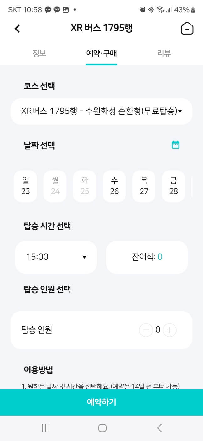 XR버스 1795행은 '터치수원' 앱을 통해 예약이 가능합니다.