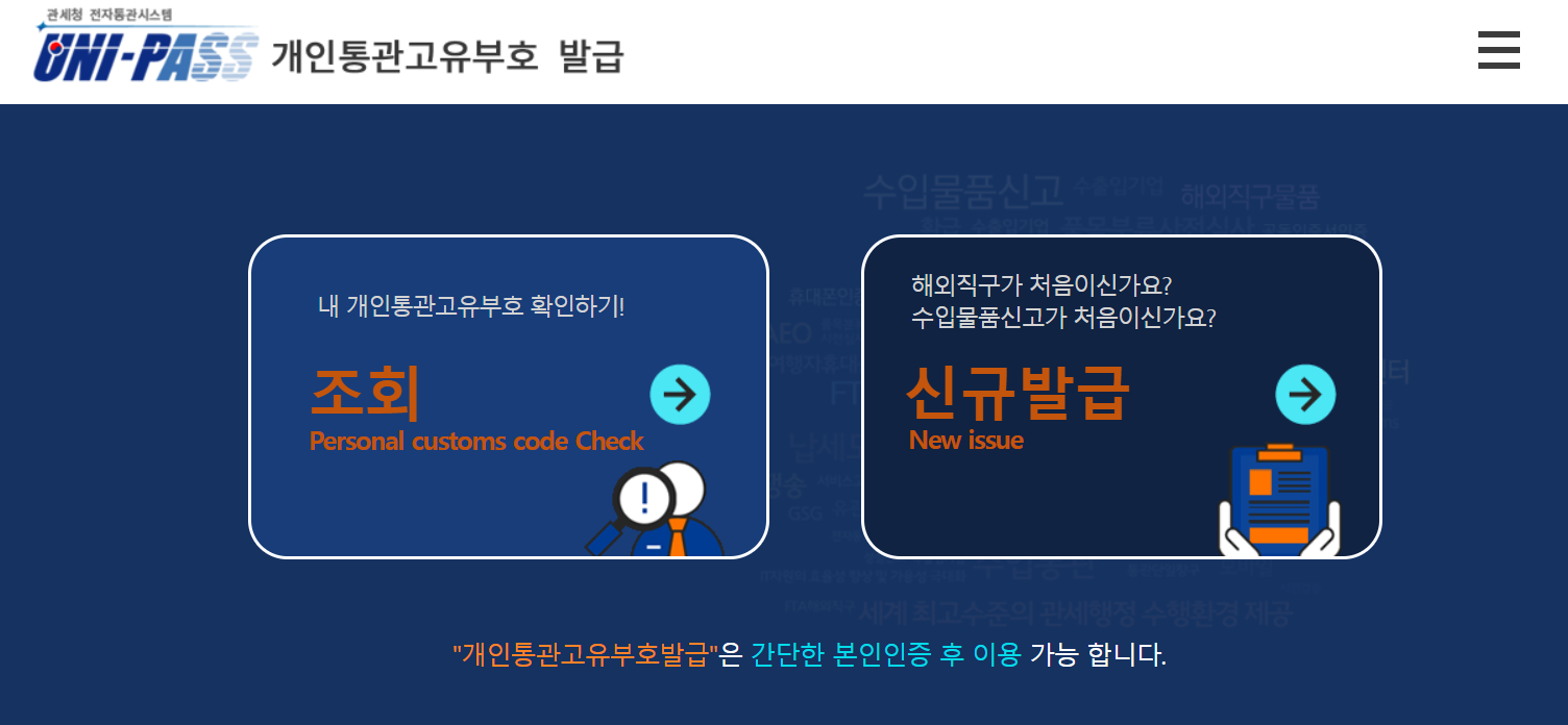 개인통관고유부호는 관세청 유니패스 사이트에서 쉽게 발급받을 수 있습니다. 아래 절차대로 따라하시면 됩니다.