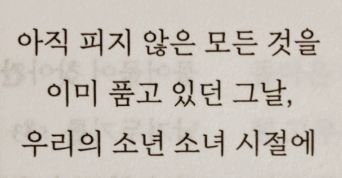 '아직 피지 않은 모든 것을 이미 품고 있던 그날, 우리의 소년 소녀 시절에...'