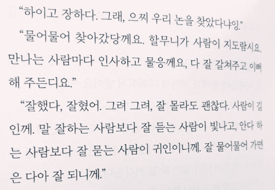 "잘했다, 잘혔어. 그려 그려, 잘 몰라도 괜찮다. 사람이 길인께.