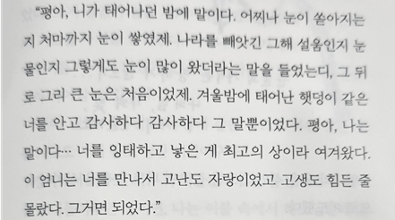 평아, 나는 말이다...너를 잉태하고 낳은 게 최고의 상이라 여겨왔다.