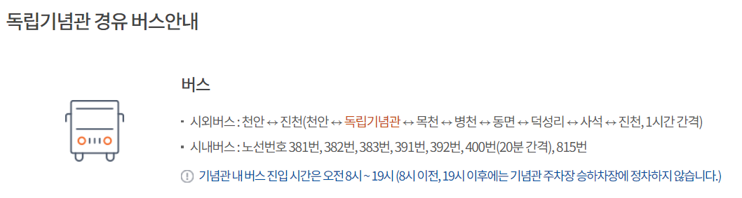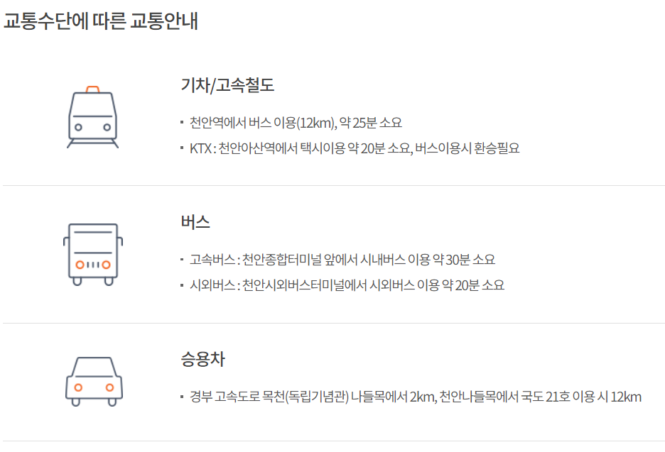 ① 주소 : 충남 천안시 동남구 목천읍 독립기념관로 1