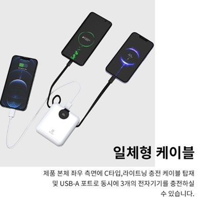 그래서 저는 아들에게 케이블 일체형 보조배터리를 선물해 주었습니다.