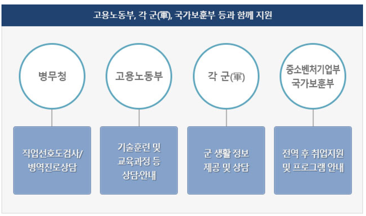 병무청, 고용노동부, 각 군(軍), 중소벤처기업부, 국가보훈부가 여러분과 함께 합니다.