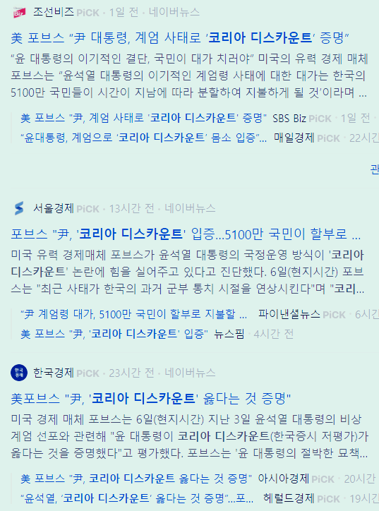 [2] NAVER - [경제] 코리아 디스카운트 뜻, 원인은? - 네이버블로그 (https://blog.naver.com/dream_asset/223413635720?viewType=pc)