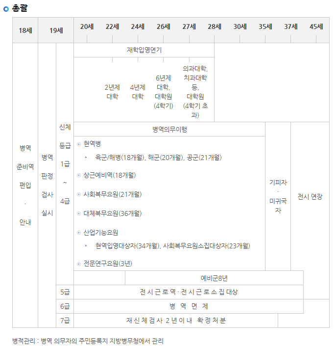 병역법에 의거 병역의무자의 병역의무 이행시기를 연령으로 표시한 경우