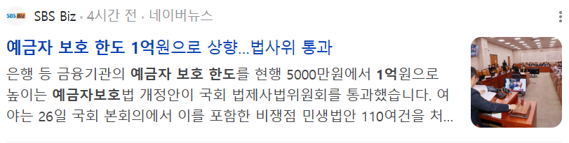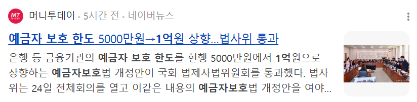 [1] 경향신문 - 예금자 보호 한도 1억 상향…뭐가 바뀌고 누가 웃을까 (https://www.khan.co.kr/article/202411230900061)